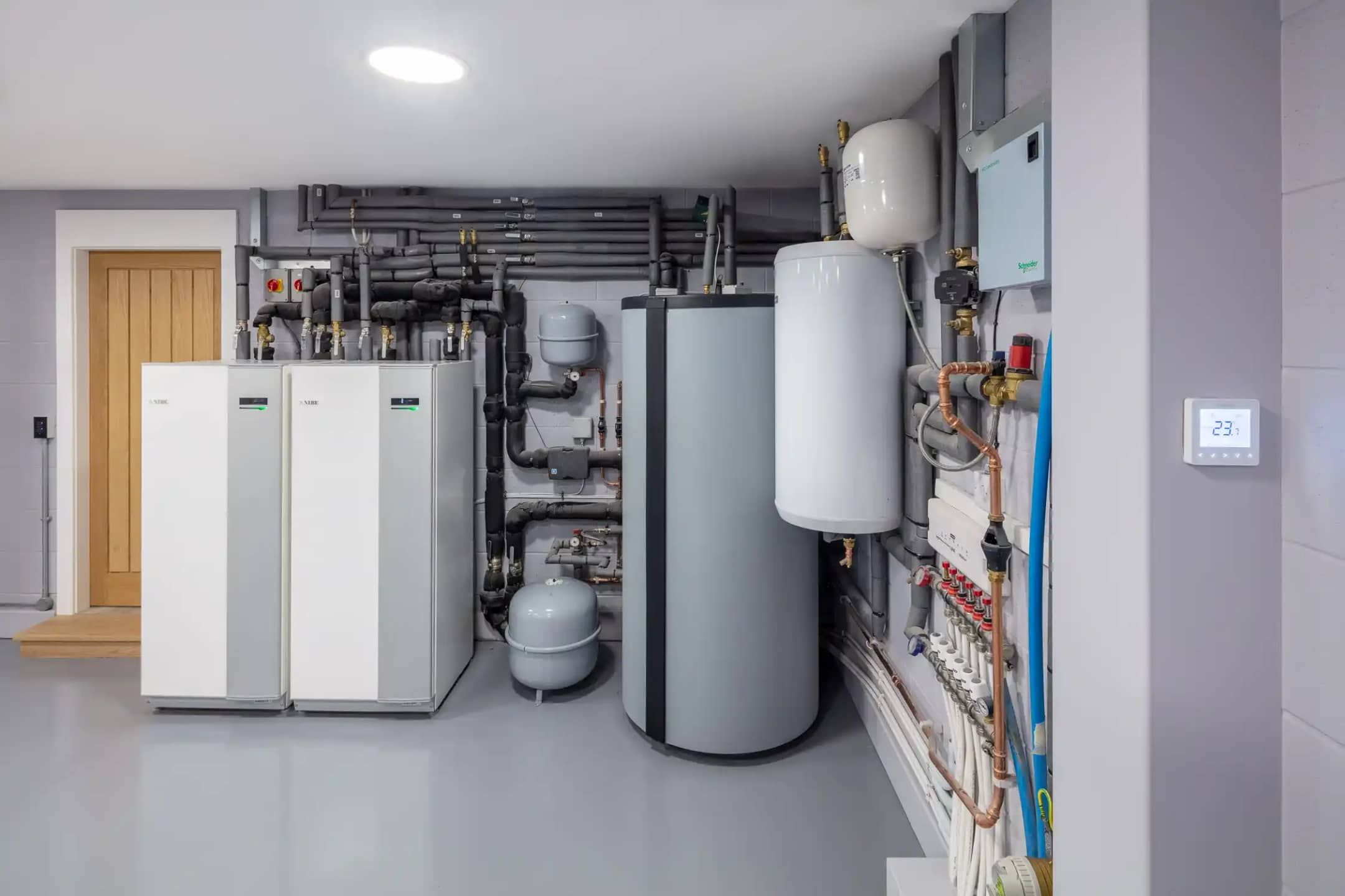 монтаж на полу или стене с выравниванием по уровню, монтаж группы безопасности бойлера, гидроаккумулятора, рециркуляционного насоса, подключение к котлу, трубопроводам холодной и горячей воды, без доработки коммуникаций и общестроительных работ